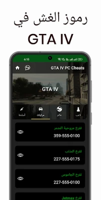 اكتشف مجموعة شاملة من رموز الغش للعبة GTA. يقدم تطبيق رموز الغش للعبة GTA جميع الأكواد السرية لـ GTA V، San Andreas، Vice City، والعديد من إصدارات اللعبة الأخرى. اجعل تجربتك أكثر إثارة ومتعة.